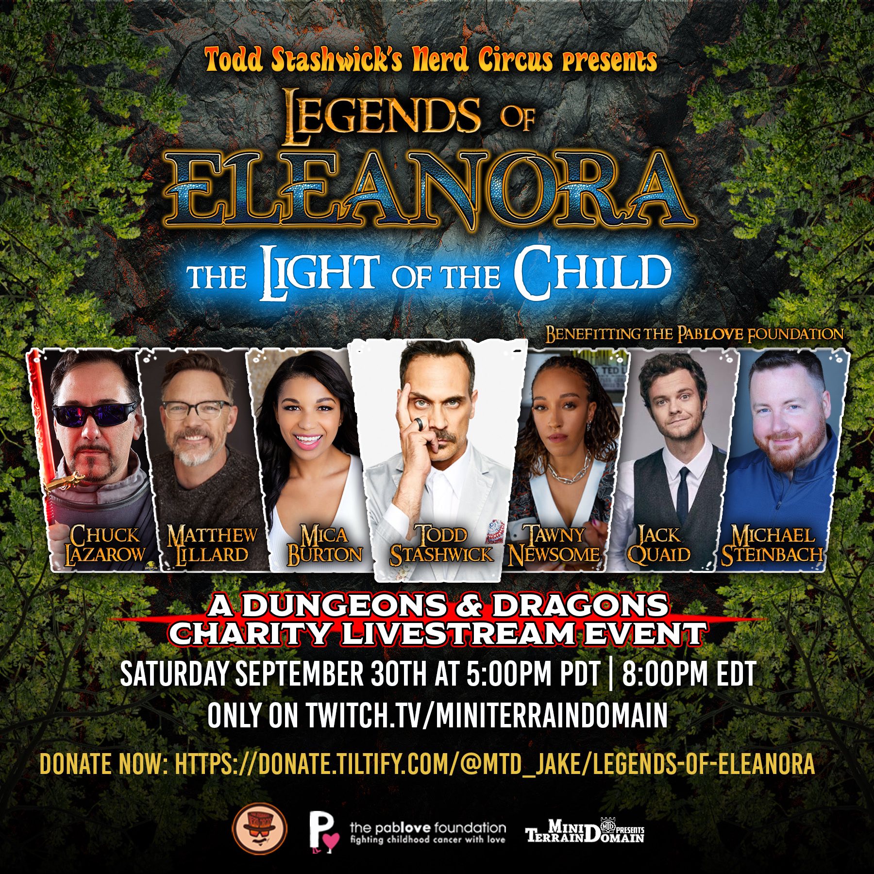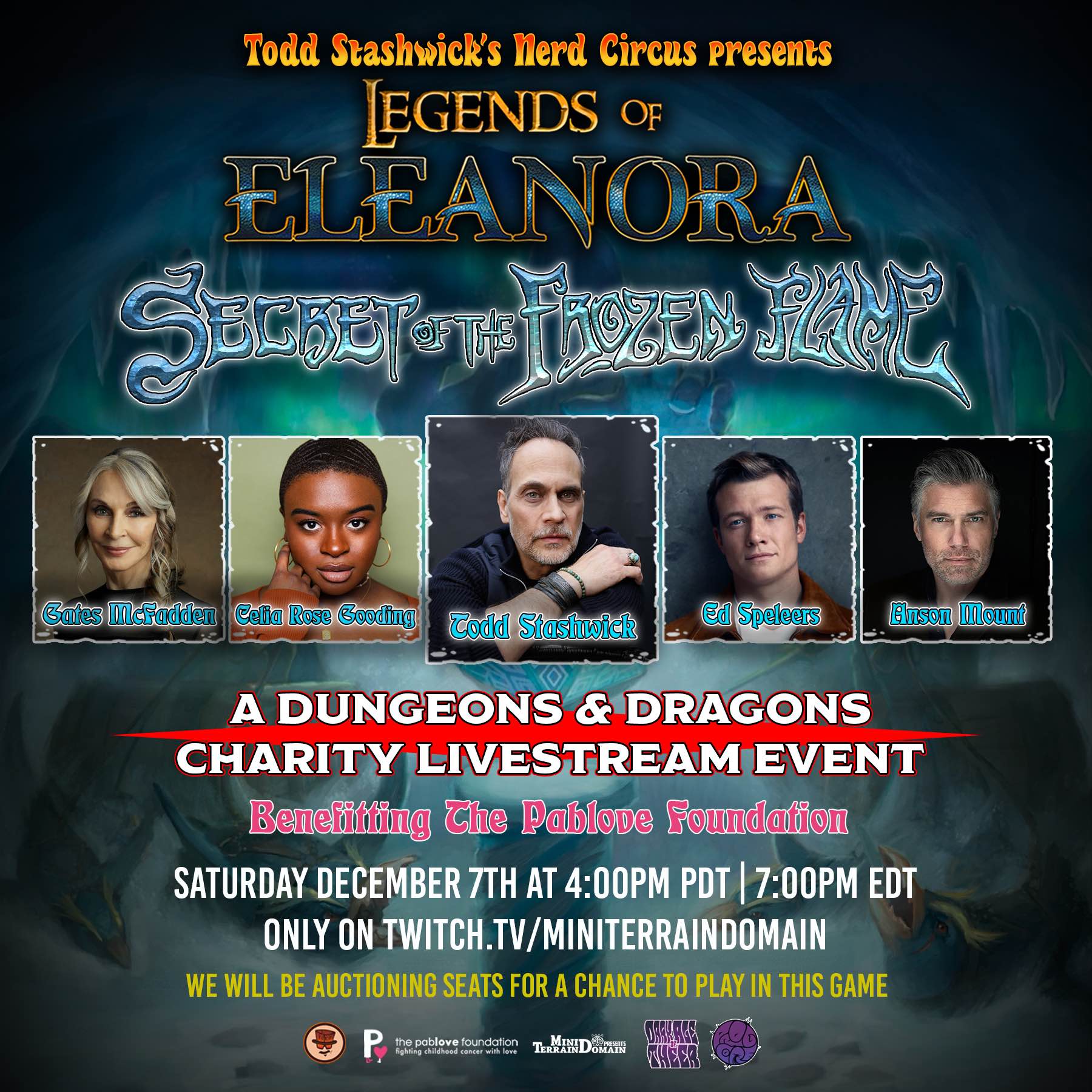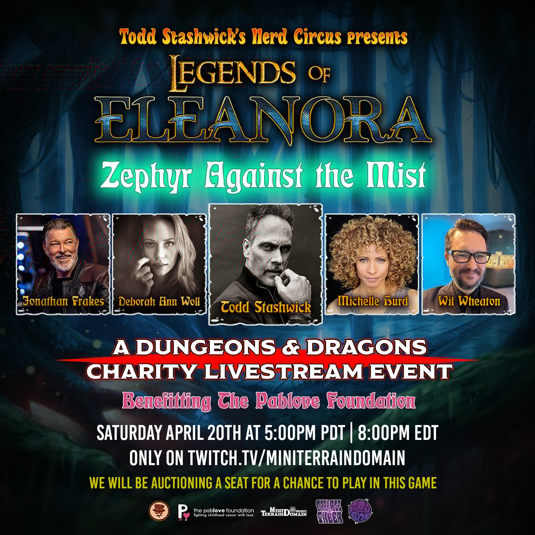When he’s not blazing through the galaxy in Star Trek Picard or fighting a time traveling cult in 12 Monkeys, Todd Stashwick spends his off time leading dice rolling adventurers through the Dark Age of Theer. He has taken his passion for Dungeons and Dragons and used it for good. Legends of Eleanora: a Reaping in the Shade marks the fourth charity collaboration with Pablove and Todd Stashwick’s Nerd Circus. Collectively they have raised over 150K. Let’s keep it going!
